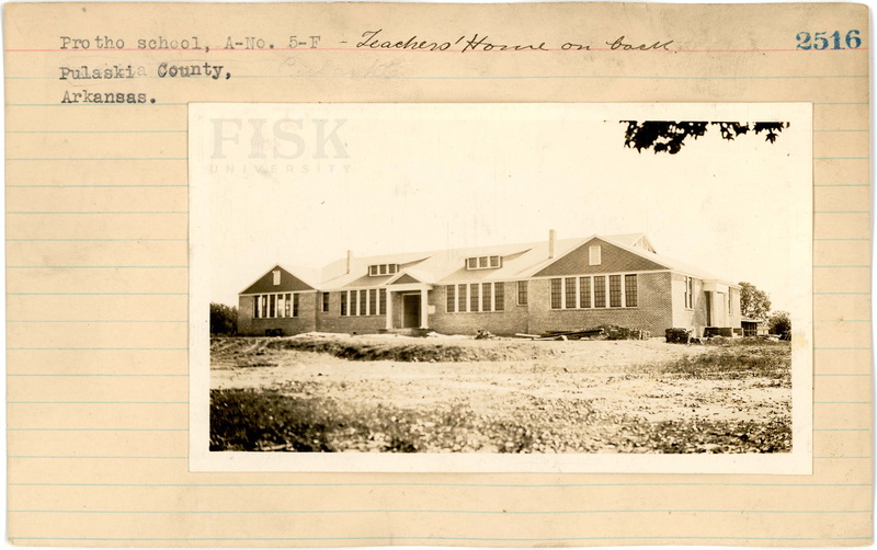 - Photo of Protho School in Pulaski County, Arkansas with a note on the front of the school card that says, "Teachers' Home on back"; photo of the teacher's home at Protho School in Pulaski County, Arkansas on the back of the card