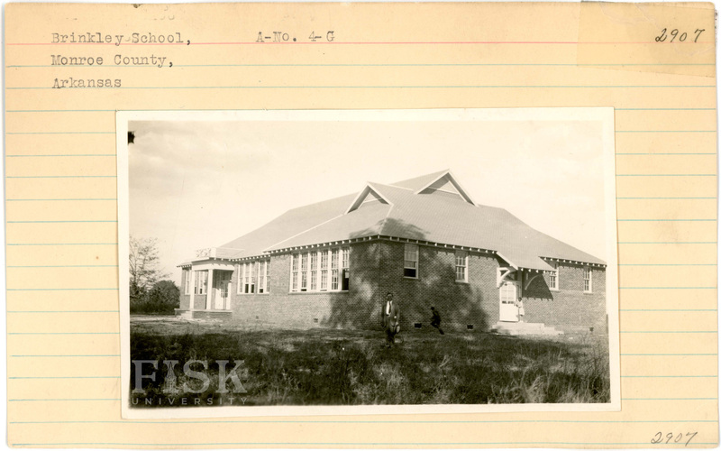 - Photo of Brinkley School in Monroe County, Arkansas on the front of the school card; photo of pupils at Brinkley School in Monroe County, Arkansas on the back of the card