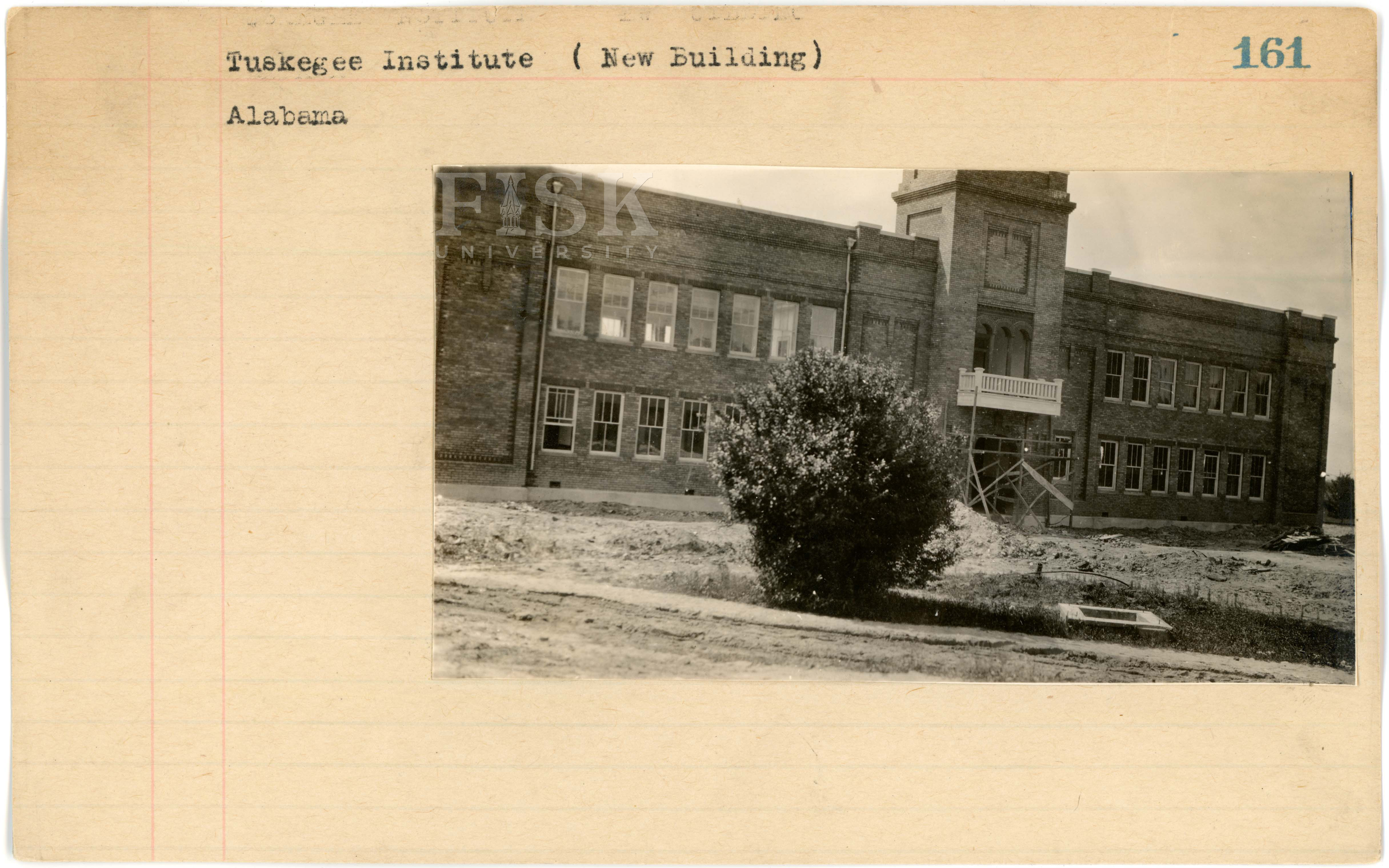 - Photo of Tuskegee Institute in Alabama with a note on the card that says, "(New Building)"