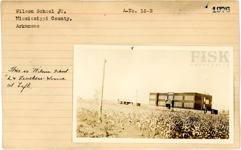 - Photos of Wilson School No. 2 in Mississippi County, Arkansas with a note on the front of the school card that says, "This is Wilson School No. 2 & Teachers' Home at left"
