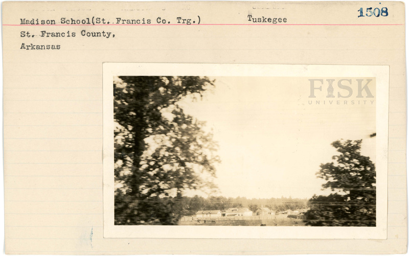 - Photo of Madison School in St. Francis County, Arkansas with a note that says, "Tuskegee"