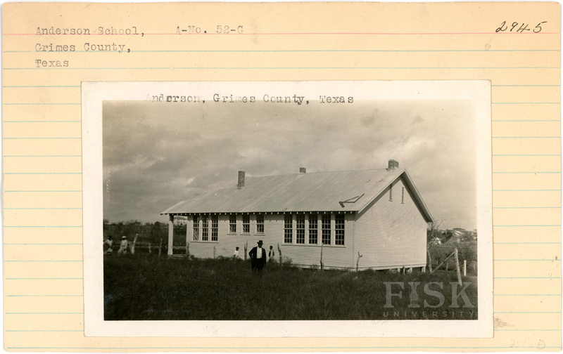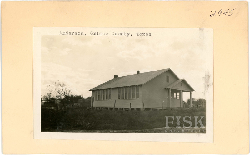- Photos of Anderson School in Grimes County, Texas with inscriptions that say, "Anderson, Grimes County, Texas"