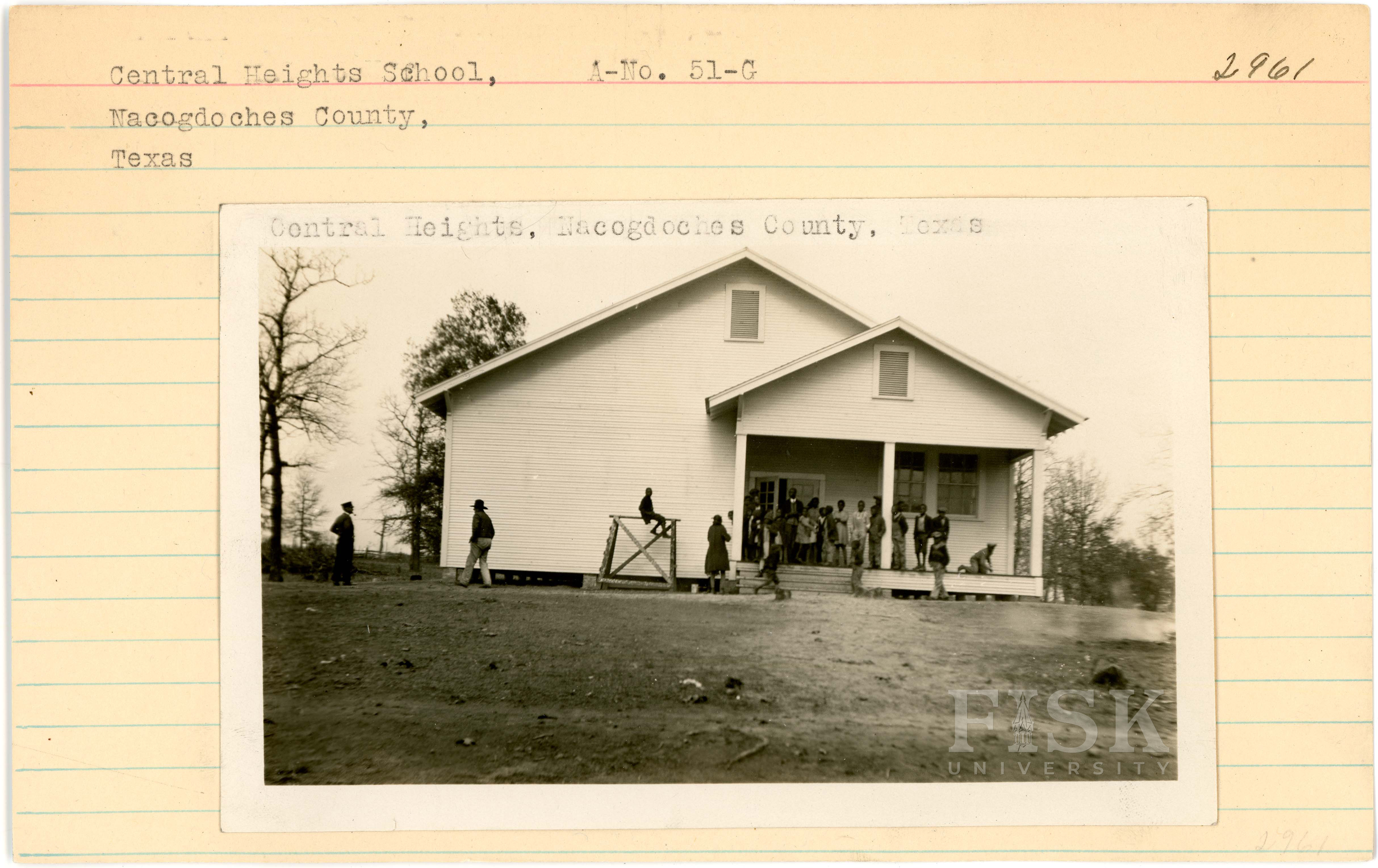 - Photos of Central Heights School in Nacogdoches County, Texas with inscriptions that say, "Central Heights, Hacogdoches County, Texas"