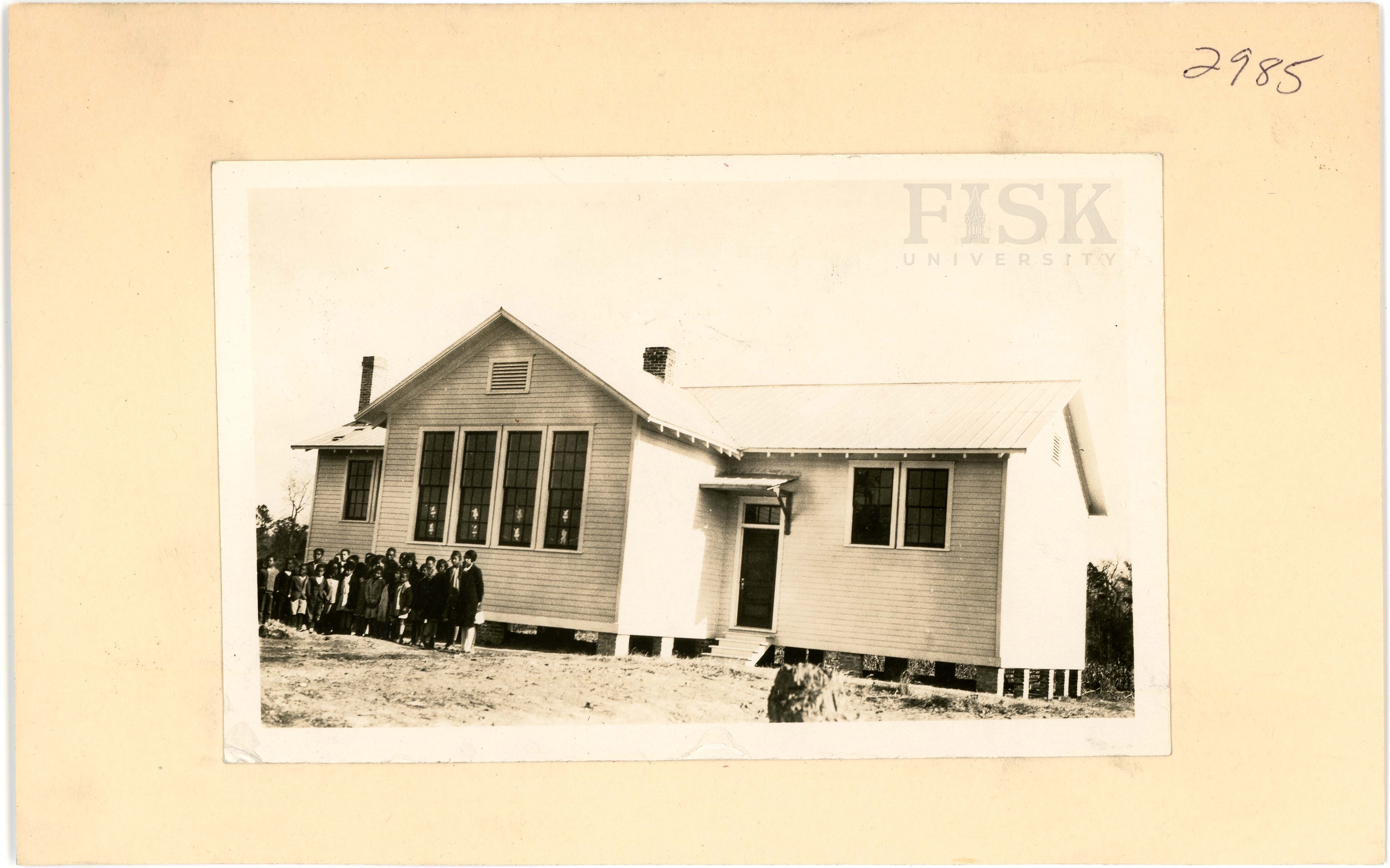 Photo of Reid's Grove School in Gates County, North Carolina on the front of the school card; photo of Reid's Grove School in Gates County, North Carolina on the back of the card