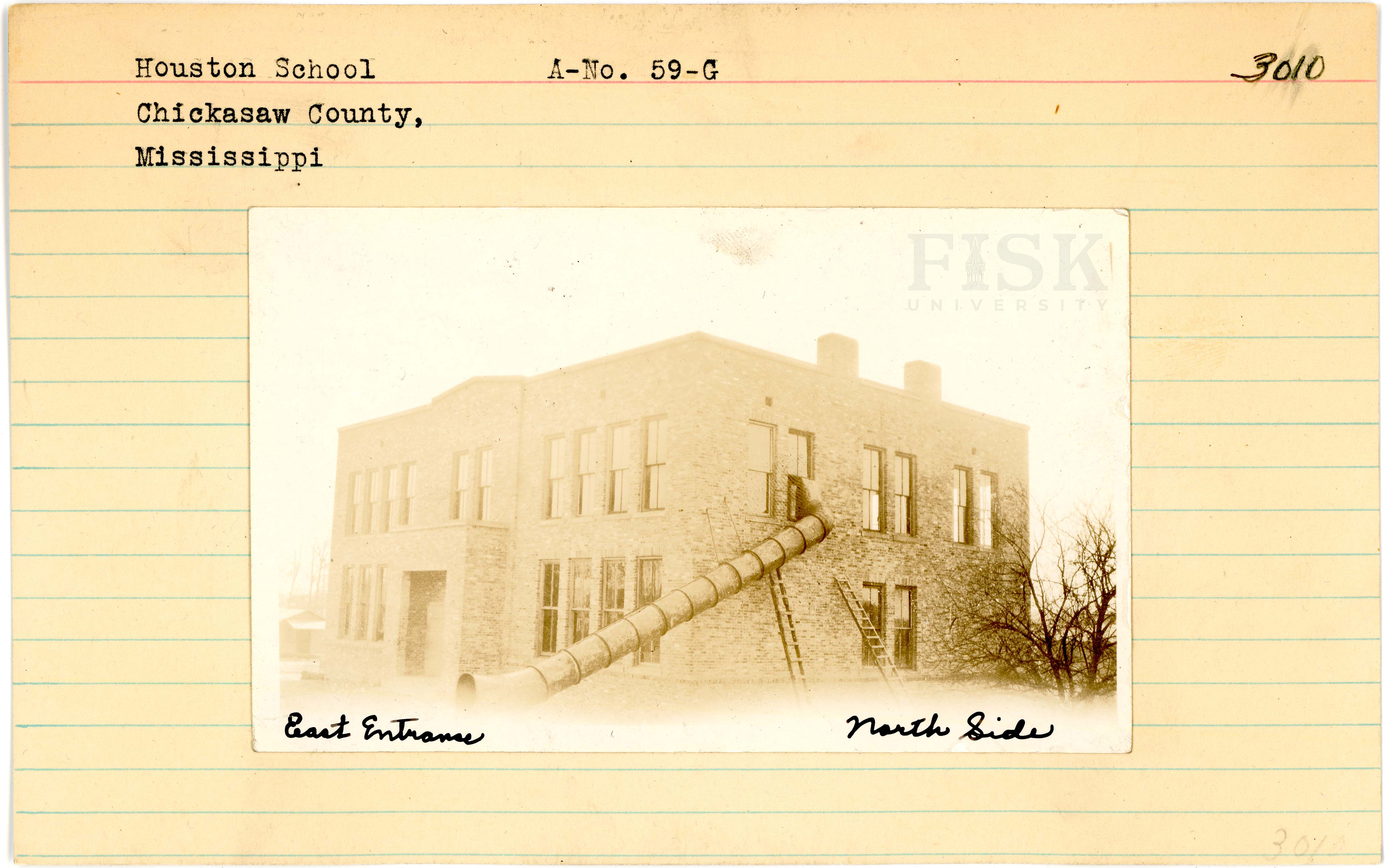 - Photo of Houston School in Chickasaw County, Mississippi on the front of the school card with a inscription that says, "East Entrance" and "North Side"; photo of Houston School in Chickasaw County, Mississippi on the back of the card with an inscription that says, "West Side" and "South Entrance"