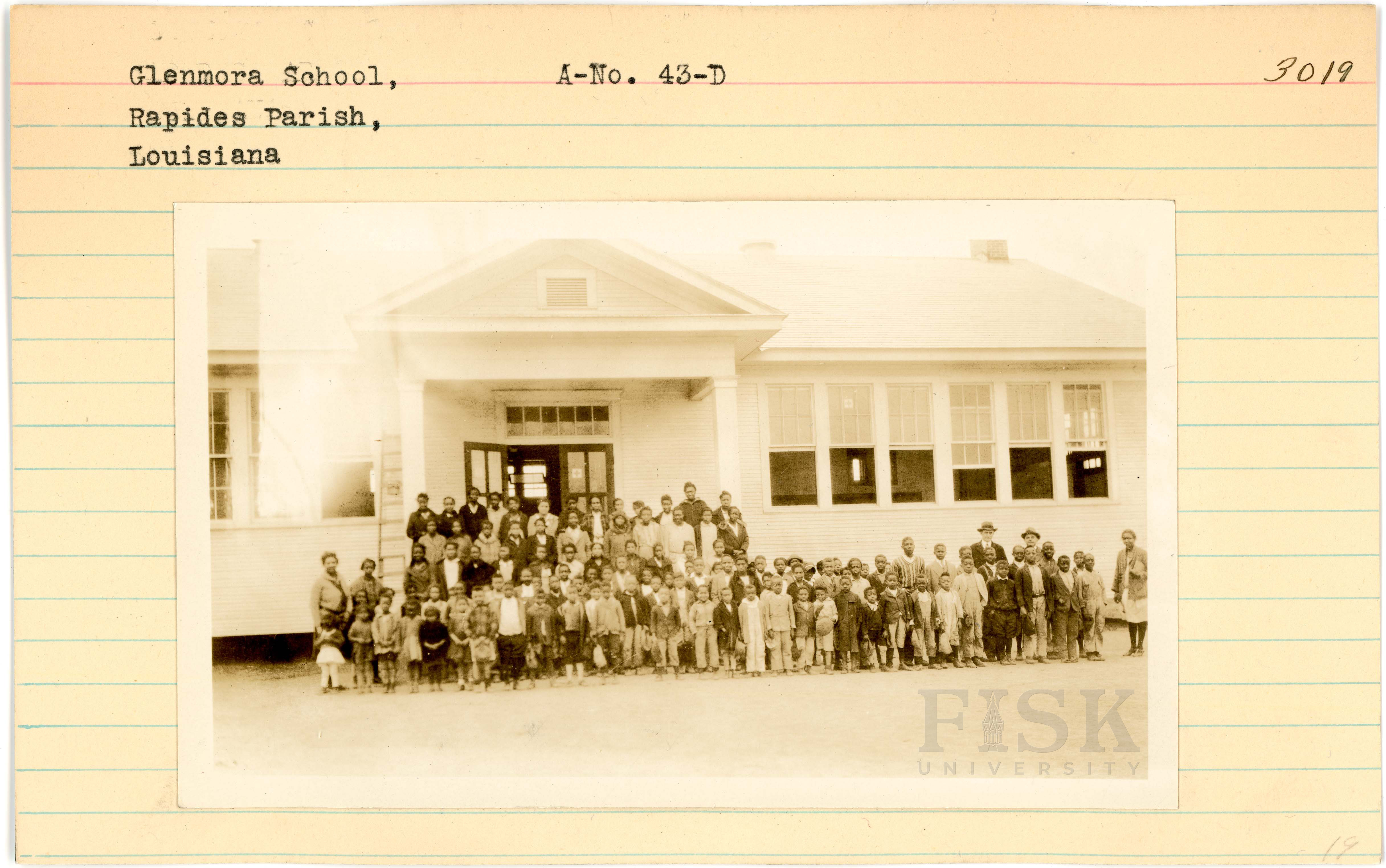 - Photo of pupils at Glenmora School in Rapides Parish, Louisiana on the front of the school card; photo of Glenmora School in Rapides Parish, Louisiana on the back of the card